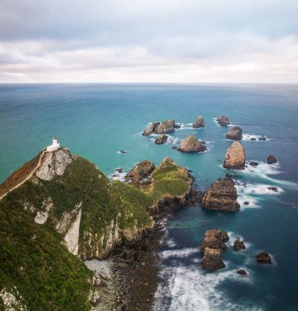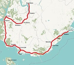 The Southern Scenic Route begins in Dunedin, follows the raw southern coastline through the Catlins to Invercargill, then turns west toward Te Anau and Queenstown.