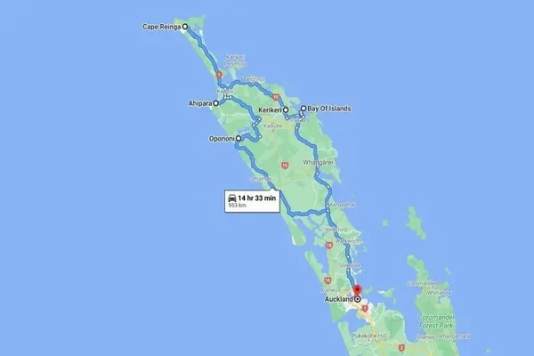 Start in Auckland. Head north on State Highway 1 to Whangarei — about two hours. Easy drive, traffic eases after the city. Whangarei has cafes and a harbor walk if you need a break.