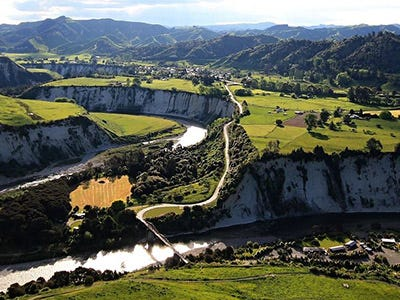 Continue north to Apiti. Even quieter. The road winds through limestone country — gentle hills, limestone bluffs in places. Rata Street Cafe in Apiti does solid lunches; locals tend to know the best pie.