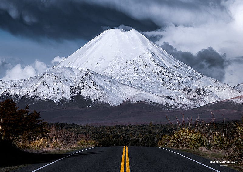 Whakapapa. Ski field in winter, base for summer walks. Short stroll to Taranaki Falls if you’re not hiking big. Or just sit with the mountain filling the windscreen. No need to rush.